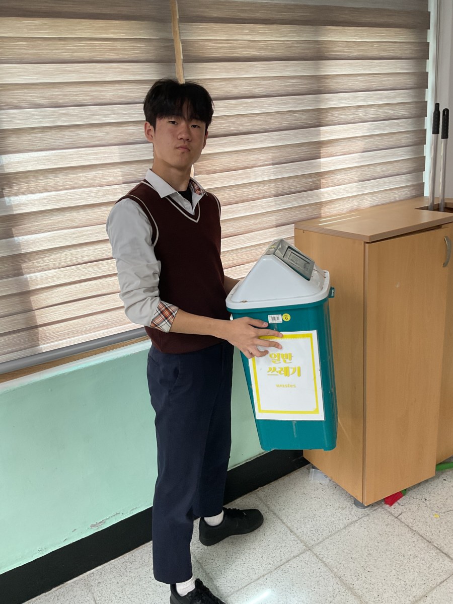 우리 학교에도 교실, 자판기 앞, 급식실 근처 등 학생들이 자주 이용하는 장소마다 분리수거함이 설치되어 있다. 병, 캔, 일반 쓰레기를 구분하여 버릴 수 있도록 되어 있으며, 대부분의 학생들은 이 분리수거함을 자주 접하고 있다.