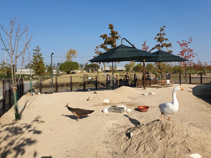 [도담마루(어린이 놀이터)_조석현 기자] 그리고 작은 동물 농장에는 토끼, 공작새, 거위, 당나귀 등 여러 동물들이 있었다.
