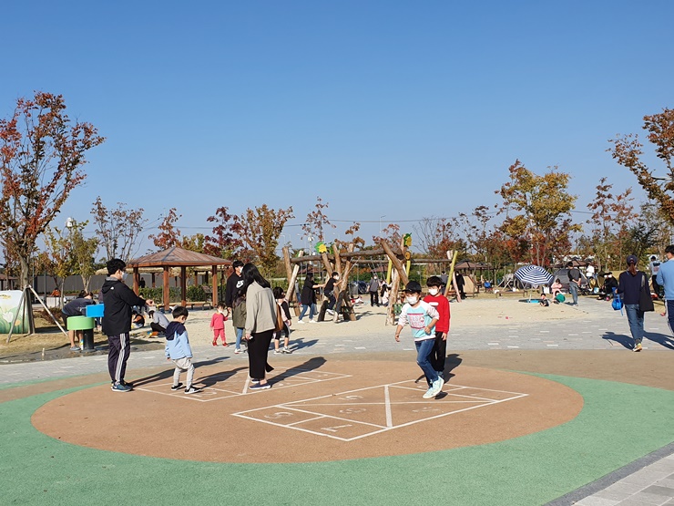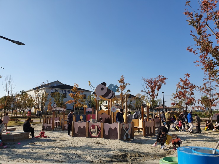 [농업생태원 피크닉장_조석현 기자] 많은 사람들이 아이들과 놀이터에 있었다.