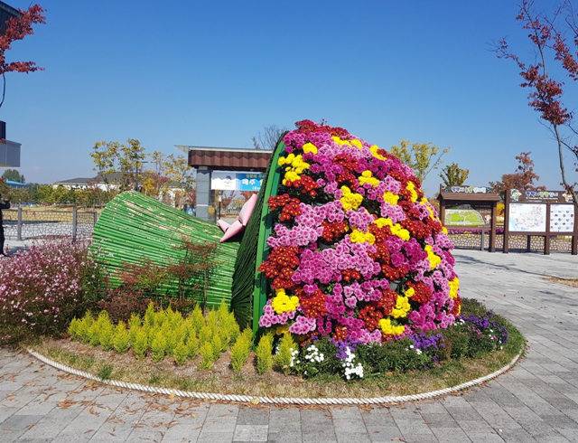 평택시 농업생태원 입구에는 국화꽃 부케가 있었다. 가을을 맞아 국화꽃 향기가 입구부터 향기로웠다.