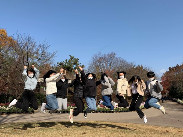 [낙엽에 생긴 하트구멍 사이로 까꿍] 구미여자상업고등학교 숲사랑청소년단 단원 15명이 11월 7일, 대구수목원과 담쟁이도자기공방으로 가을 체험학습을 다녀왔습니다. 코로나 19 때문에 바깥으로 나갈 기회가 많이 줄었고 또, 단원 모두가 참여하는 활동은 처음이라 모두 떠나기 한참 전부터 들떠있었습니다. 출발하기 전 지금 아픈 사람은 없는지 모두 확인한 후 구미시에서 1시간 정도 거리에 있는 대구광역시로 버스를 타고 이동했습니다. 단원들끼리 친해질 기회가 없어 서로 어색한 사이였지만 그런데도 차 안에서는 이야기 소리가 끊이질 않았습니다.