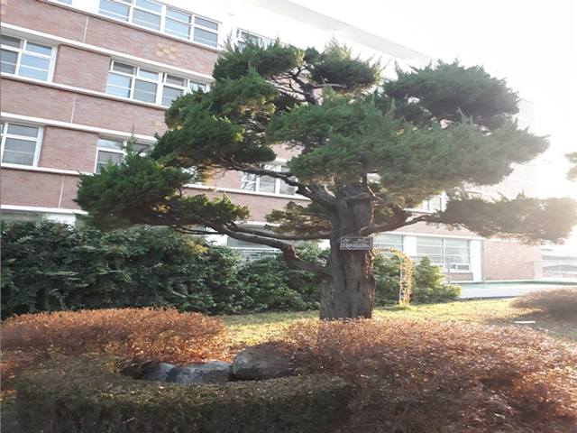 [체육관 앞 소나무_이예린 기자] 운동장을 따라 걷다 보면 체육관 앞에 문경여고 교목인 소나무가 자리 잡고 있습니다. 소나무는 교목인 만큼 후문으로 가는 길에 소나무가 연이어 있습니다. 이뿐만 아니라 산책을 하다가 눈만 돌리면 소나무를 볼 수 있습니다. 소나무의 가장 큰 특징인 만고상청의 빛깔은 교목으로서 불변하는 여성의 정절을 나타내고, 뾰족한 침엽은 예리한 판단력과 슬기로움을 나타내고 있습니다. 소나무의 잎은 소화불량에, 꽃은 이질에, 송진은 고약의 원료에 약용으로 쓰여 나무의 하나하나가 소중한 것 같습니다.
