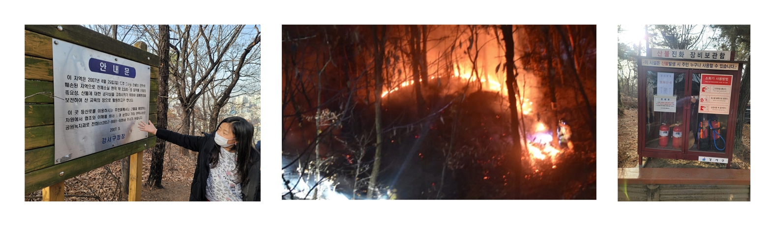 [2007년 4월 봉제산 산불 사진과 산불진화 장비]