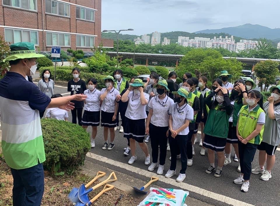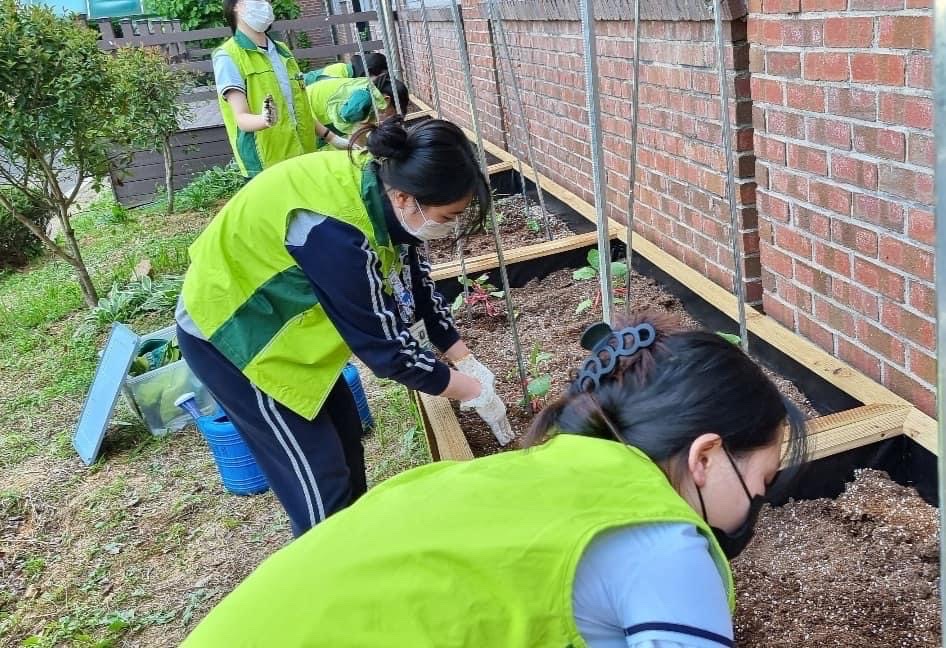 학생들이 직접 모종을 심는 모습 / 광주여자상업고등학교 페이스북