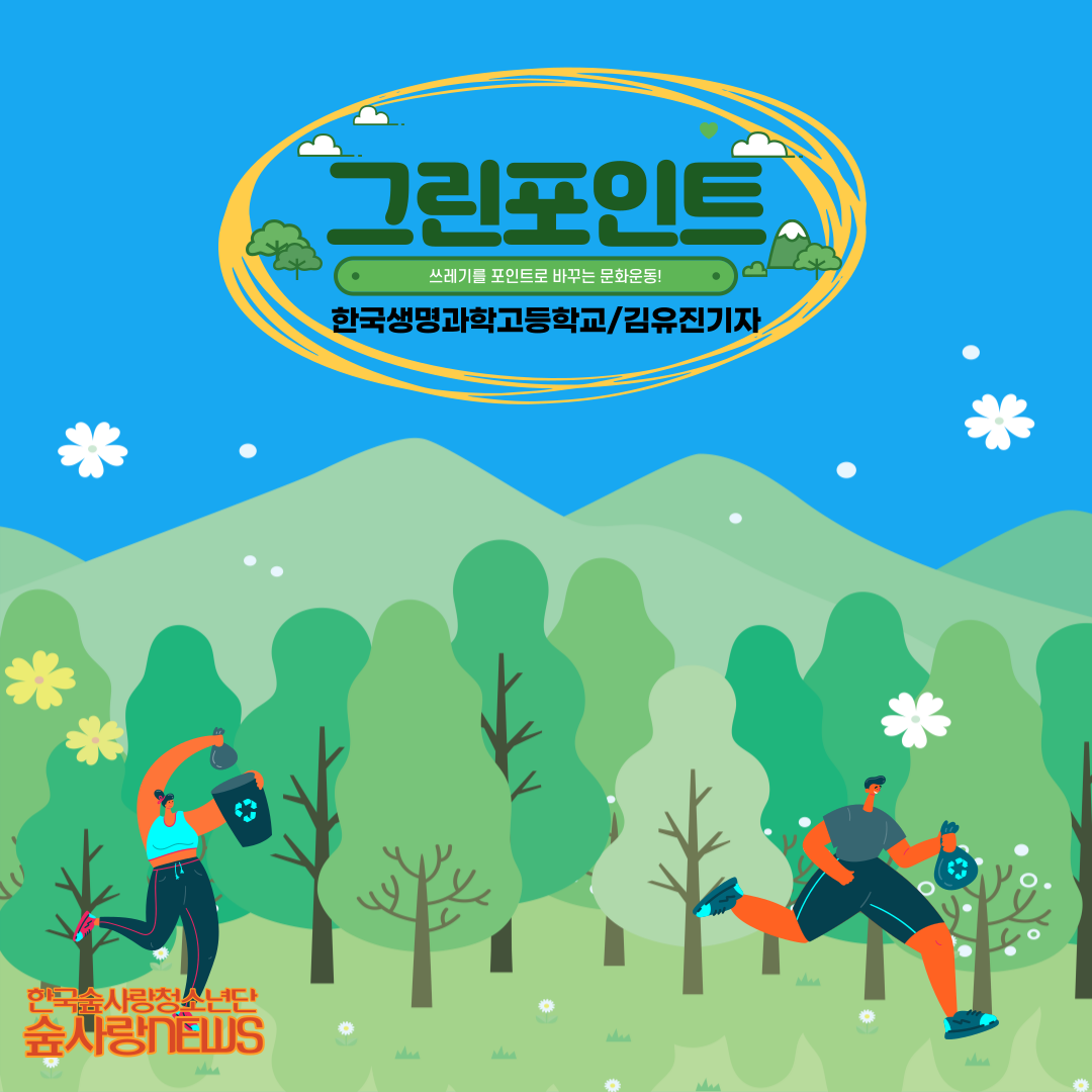 ■ 산행정보앱 활용 적립 국립공원에서 수거한 쓰레기를 공원 배경으로 찍은 사진 1장, 집 배경으로 찍은 사진 1장 총 2장을 보내면 700포인트가 적립됩니다. 이렇게 모은 포인트를 사용하는 방법은 그린포인트 홈페이지 접속 후 로그인을 한 뒤, 상품 또는 공원시설을 클릭하고 온라인 쇼핑몰, 에약관리시스템 및 공원 현장에서 사용이 가능합니다. 그리고 2020년 4월 6일부터 그린포인트를 하면 봉사시간도 인정이 된다고 하니 국립공원을 가실 때 그린포인트를 많이 활용하여 자연을 깨끗하게 하는데 동참하길 바랍니다. 이상 김유진 기자였습니다. 한국생명과학고등학교 / 김유진 기자 |