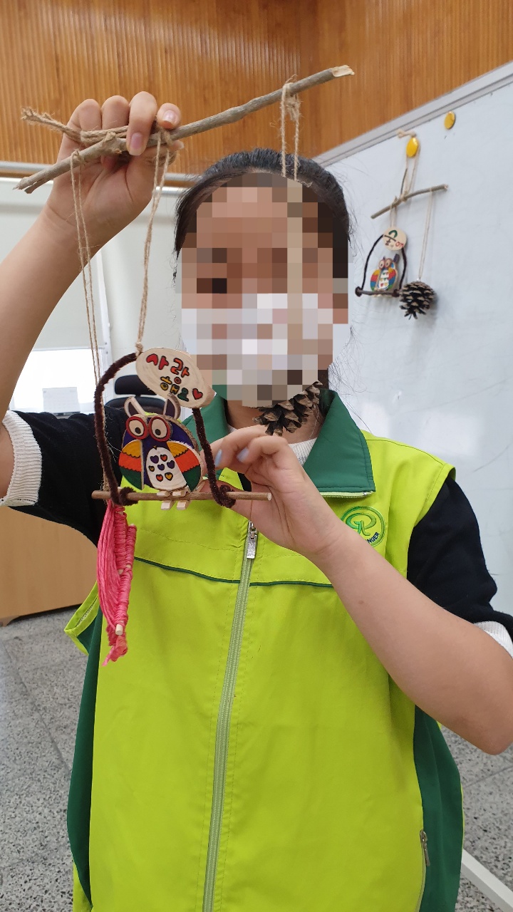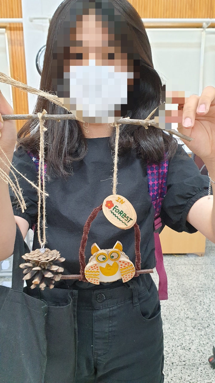 기계로 만들지 않고 자연에 있던 나무들을 이용하여 멋진 모빌을 만들 수 있다는 것이 신기했고 앞으로도 자연에 대해 더욱 더 관심을 가져 자연을 잘 활용하고 지켜줄 수 있는 숲사랑 대원이 되고 싶었습니다. 우리가 알고 있던 모빌들은 사용 후 자연을 훼손 시킬 수 있지만 숲에 떨어져 있던 나무들을 이용한다면 더욱 더 멋지고 자연을 지킬 수 있는 모빌을 더욱 많은 사람들이 선호하지 않을까요? 또 집에서 쉽고 예쁘게 만들고 집을 꾸밀수도 있습니다. 여러분들도 자연을 아끼고 지키려는 멋진 마음으로 자연을 이용한 예쁜 부엉이 모빌을 만들어 집이나 방을 꾸며보면 좋을 것 같다는 생각이 듭니다. 앞으로도 자연을 사랑하고 지키는 숲사랑청소년단이 되어보세요! 구평남부초등학교 임세은 기자 |