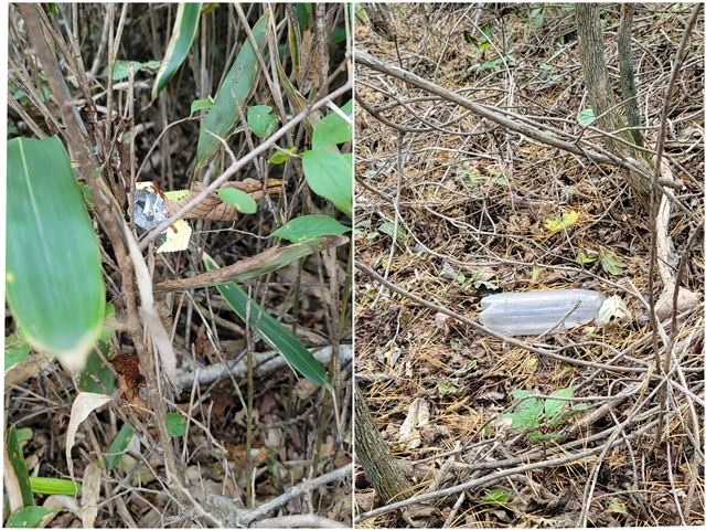 [ 산에 버려진 쓰레기 -사진:이기명기자 ] 요즘 산을 찾는 사람들이 늘어나면서 쓰레기 문제가 더욱 심각해 졌다. 이러한 문제를 해결하기 위하여 많은 사람들이 산행을 하면서 쓰레기를 줍는 활동을 같이 하고 있다.