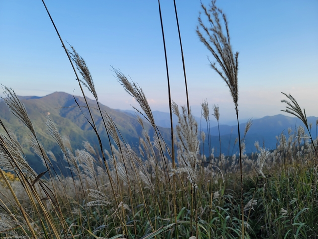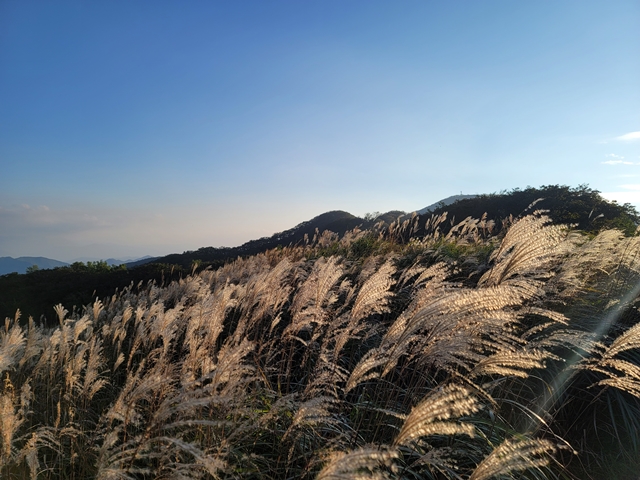 [ 장안산의 억새 -사진:이기명기자 ] 특히, 9월에 꽃이 피는 억새는 ‘가을의 왕자’라고 불러도 손색 없을 만큼 아름다운 모습을 보여준다.무룡고개 코스는 억새가 많았기 때문에 자연의 아름다움에 흠뻑 빠져볼 수 있었다. 억새와 햇빛이 만드는 경치는 절로 감탄을 불러 일으켰다.