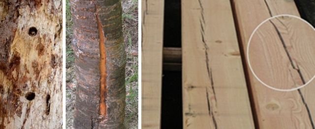 이것을 보고 차이점이 단박에 보이지 아니한가? 말 그대로 부후의 경우에는 목재의 뿌리 줄기 잎 등으로 침투한 부후균의 경우로 목질 세포가 썩어 피해를 입히는 임업 경영인의 재선충 다음 버금가는 심각한 질환이다. 이러한 부후균 덕택에 특용재 1등급 용재가 5등급 용재로 격하 되는 경우가 매 있다. (곰팡이의 일종인 부후균이기 때문에 습한 공간에 잘 생기기 때문) 이처럼 부후는 용재목,일반 경영목 등 경영인의 악재라 난 생각한다. 그리고 부후균의 침투와 비슷한 경우인 할렬의 경우를 설명 해 보도록 하겠다, 글을 읽는 독자들은 어떠하게 생각하는지 모르지만 나는 이렇게 생각한다. 부후와 달리 할렬은 사전 방제가 가능 하다라고 물론 다른 불가피 또는 급작스러운 피해가 생긴다면 모르겠으나 우선적으로 할렬 사전방제는 시설을 구성하는게 중요하다 생각한다. 할렬이 무엇인가? ‘국부적인 압축력이 재료 내부에 인장 응력을 발생시켜 재료가 파괴되는 현상.’이라 우리 사회적 통념에서 서술을 하고 있으며 현 종사자 또한 이러하게 생각을 하고 있을 것이다. 이러하여 이러한 압축인장이 어떠하게 발생이 하는가 라고 다시 한 번 묻는다면 그것은 바로 수분의 침투이다. 우리들은 주변이 물이 없음 살지 못 하는 환경에 살고 있다. 이러한 환경이 없다면 사람들은 살지 못 할 것이다. 이처럼 식물도 사람과 같다. 물이 있어야하며 에너지원이 있어야 지속가능한 식물자원이 될 것이다. 내가 이러한 소리를 한 까닭은 바로 할렬의 원인은 ‘수분의 과다 침투’ 명명 할 수 있다.