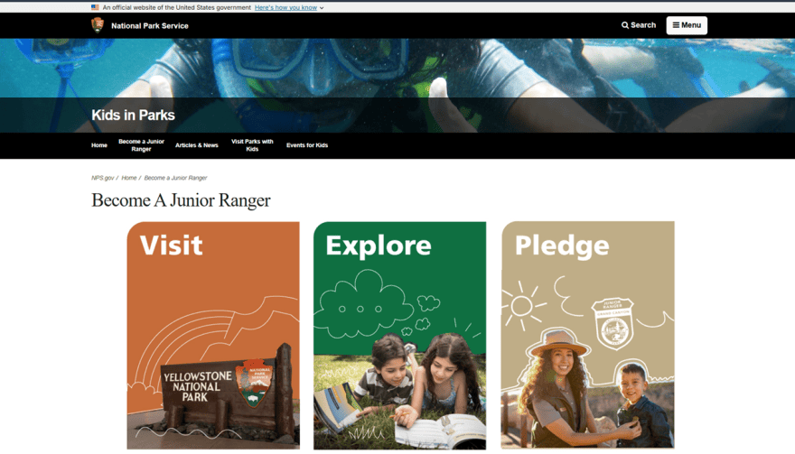 [주니어레인저 미션을 수행을 완료하면 받는 뱃지] (https://www.nps.gov/kids/become-a-junior-ranger.htm)