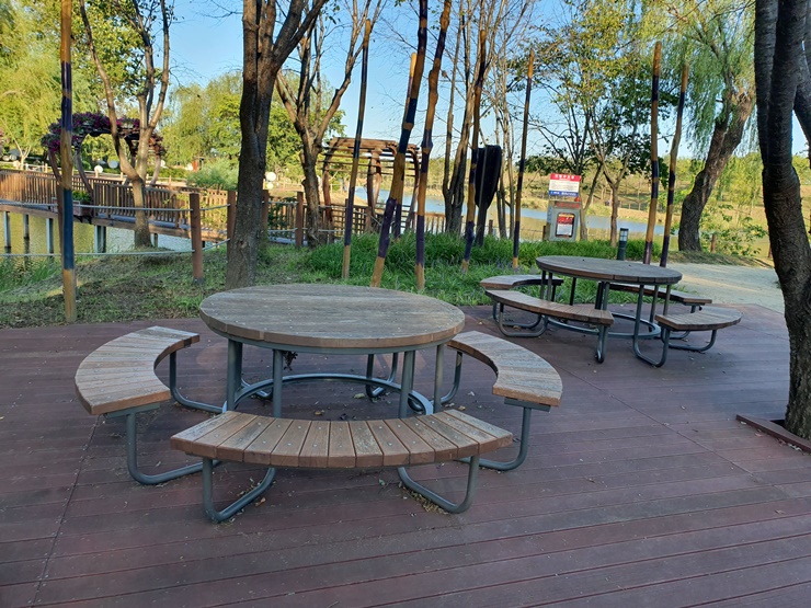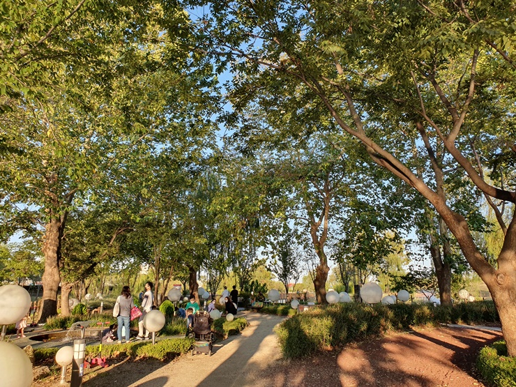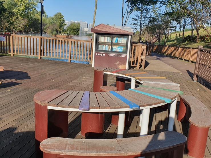 4가지 테마섬은 모두 다르다. 첫번째는 이화정원이다. 이화정원은 팔각정, 어옹수조, 독서쉼터, 포토존 등 다양한 볼거리와 쉼터가 있다. 산책하기가 좋고 연못에 연잎이 많아 연잎을 관찰할 수 있다.