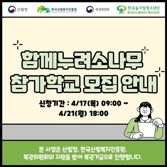 ⦁ 첨부파일 (공문)함께누려소나무 참가학교 모집 안내.pdf (붙임1)함께누려소나무 계획(신청서 포함).hwp