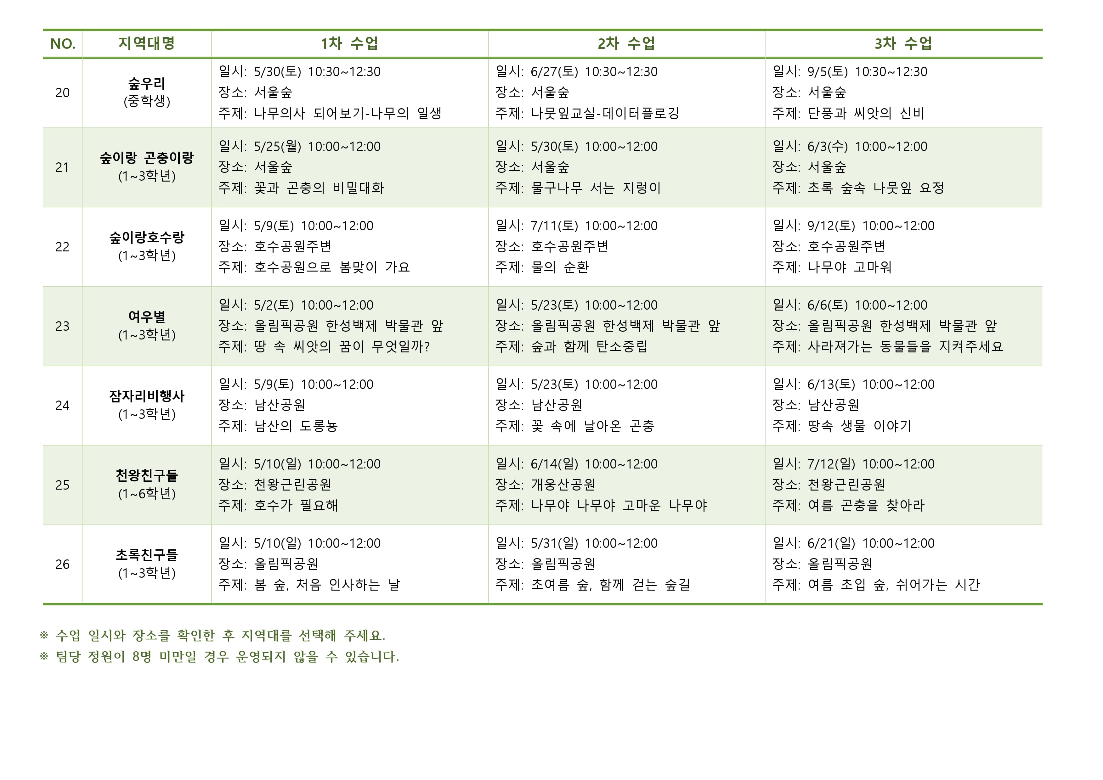 ⦁ 첨부파일 서울지역 지역대 수업 일정 안내.pdf