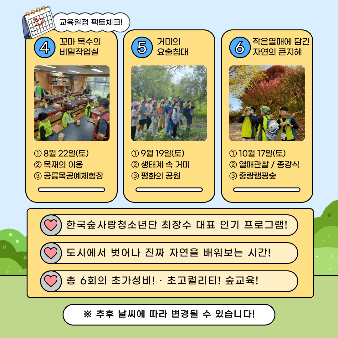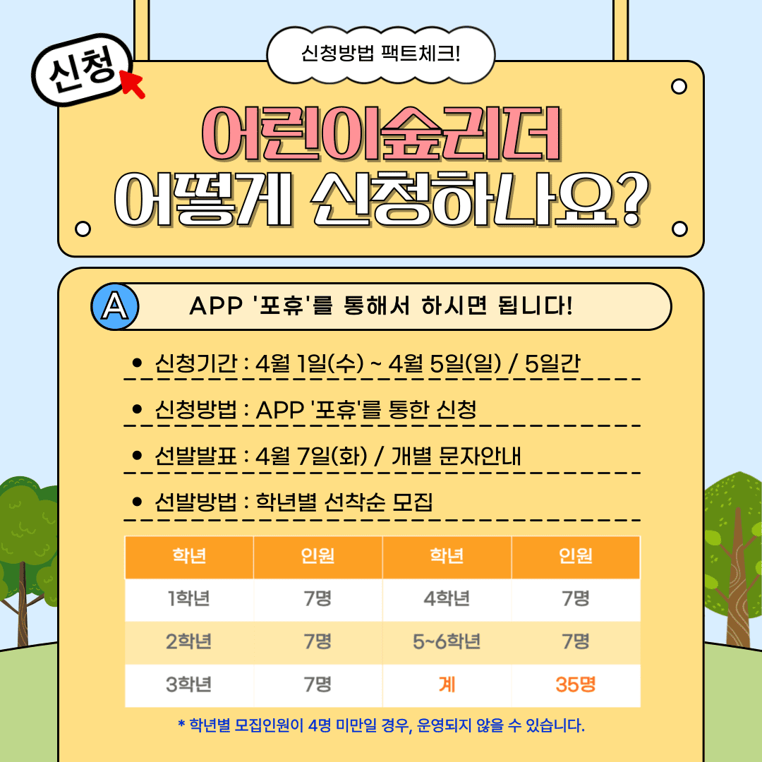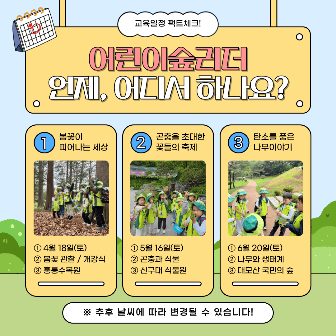 ⦁ 첨부파일 [붙임1] 제19기 어린이 숲리더 운영계획서.hwp [붙임2] 단복 구입 및 사이즈 안내사항.pdf