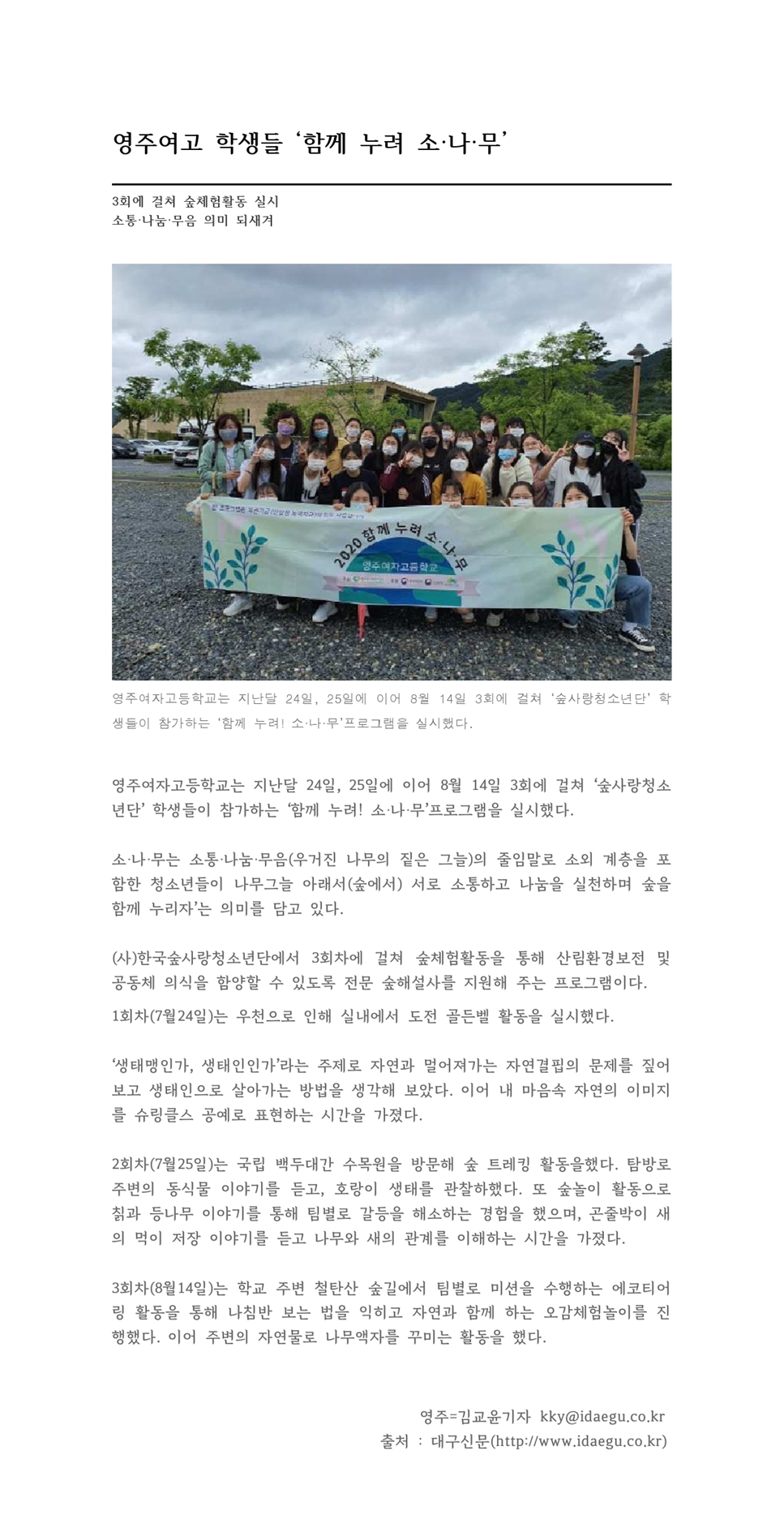 ⦁ 기사출처 대구신문