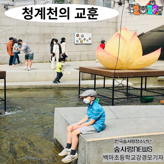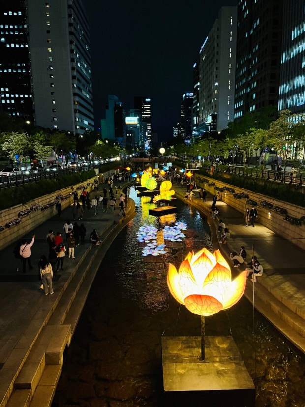 이 사진들은 현재 청계천의 모습이다. 결국 도로를 없애고 청계천을 복원시켰다. 매달 5월이면 부처님오신날을 기념해 연등회를 연다. 그 외에도 각가지 장터를 여는 등 청계천에서 현재 우리는 많은 것을 누린다. 자연 하천이 그대로 보존되었다면 더욱 아름다운 모습이지 않았을까? 자연 하천에 오물을 내다 버리고 그로 인해서 불편해지자 자연 하천을 덮고 도로를 건설한 것은 인간이 환경을 파괴해서 비롯된 것이다, 이런 교훈을 마음에 새기고 환경을 해치지 말아야 할 것이다.