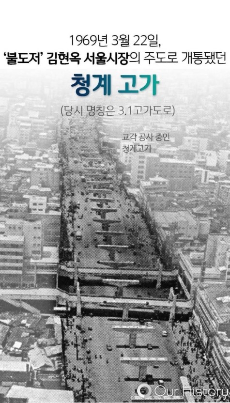 [출처 황금관식님의 황금어장님의 블로그] 이 사진은 70년대의 청계천모습이다. 1967년 청계천에 오물이 많아지자 시민들의 불편으로 청계천을 없애고 1976년에 도로 건설을 완성했다.