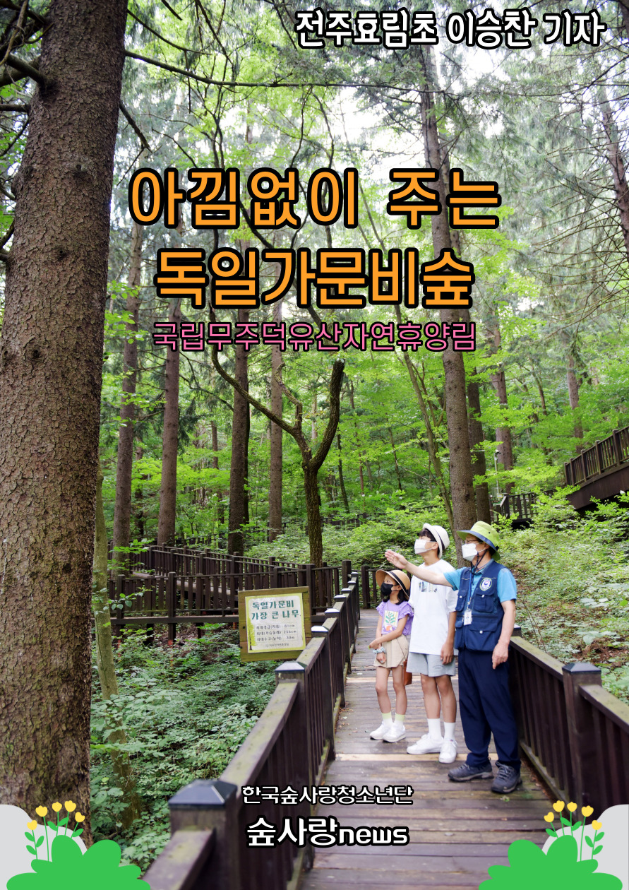 덕유산자연휴양림 안에 자리 잡은 독일가문비숲은 우리나라에서 군락으로 숲을 이룬 유일한 곳입니다. 우연히 만난 숲 해설가(김병전) 선생님의 설명을 들으며 덕유산자연휴양림 가문비나무 숲의 아름다움과 다양한 식물들에 대해 자세히 알 수 있었습니다.