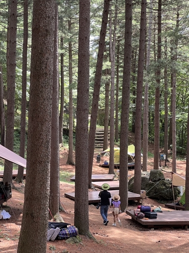 덕유산 자연휴양림 야영장은 높게 뻗은 울창한 전나무 숲이 내어주는 그늘과 피톤치드(숲속 식물들이 만들어낸 살균성을 가진 물질) 가득한 바람이 솔솔 불어 쾌적한데요. 숲 속에서 들려오는 바람소리, 새소리를 들으며 힐링을 할 수 있습니다. 무더위를 피해 온 가족이 함께 휴양림 야영장에서 한나절 또는 하룻밤을 보내는 것만으로도 더위를 피할 수 있을 듯 합니다.