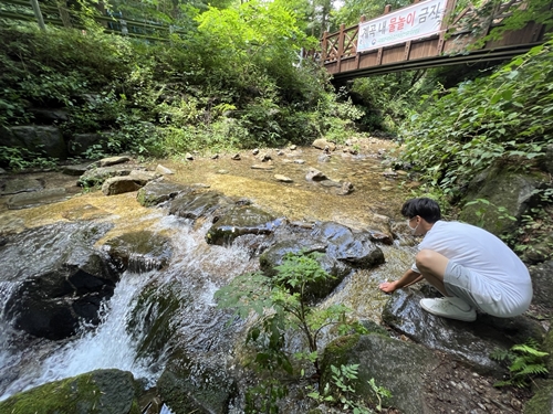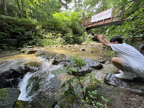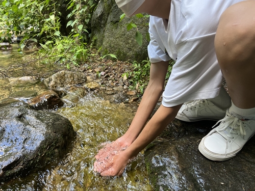 야영장 바로 옆에 있는 작은 계곡에서 내려오는 시원한 물을 직접 만지며 더위를 식혔습니다. 숲에 비가 오면 대부분의 물이 지표면에서 흘러가 버리지만, 식물의 뿌리, 줄기에 흡수되어 바로 사라지지 않습니다.시간이 흐르면서 천천히 이 물들이 밖으로 나오기 때문에 계곡물이 계속 흐를 수 있습니다.시원한 물을 끊임없이 제공해 주는 숲과 나무에게 감사함을 또 한번 느꼈습니다.
