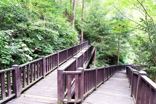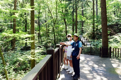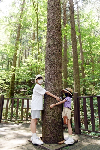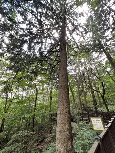 독일 가문비 숲길이 반갑습니다. 덕유산자연휴양림 내 독일가문비 숲 탐방로에는 관광객들의 편의를 위해 무장애 데크길이 조성되어 있는데요. 이 탐방시설은 장애인, 노약자, 휠체어 사용자 등 거동이 불편한 분들도 숲속으로 쉽게 접근할 수 있을 뿐만 아니라 탐방객 방문으로 땅 눌림, 뿌리 노출의 피해를 최소화하기 위해 만들어졌습니다.