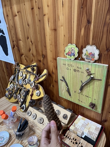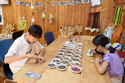 숲에서 볼 수 있는 나뭇가지, 씨앗과 열매 등을 사용하여 나무목걸이, 나무열쇠고리, 나무연필 등을 만들어보는 친환경 생태공예 체험(체험료 1,500원)을 해보았습니다. 자연 재료를 이용하여 자유롭게 체험활동을 하였습니다. 생태공예 체험은 누구나 즐기기 좋습니다.