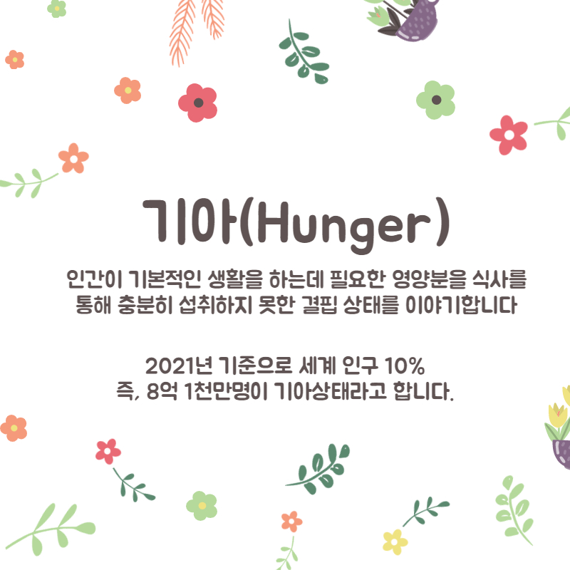 2021년 기준 세계 인구 10%가 기아라고 합니다