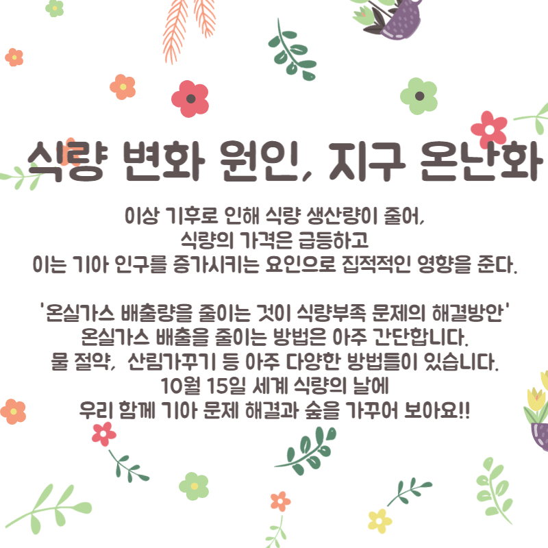 온실가스 배출량을 줄이는 것이 식량부족 문제의 해결방안입니다!