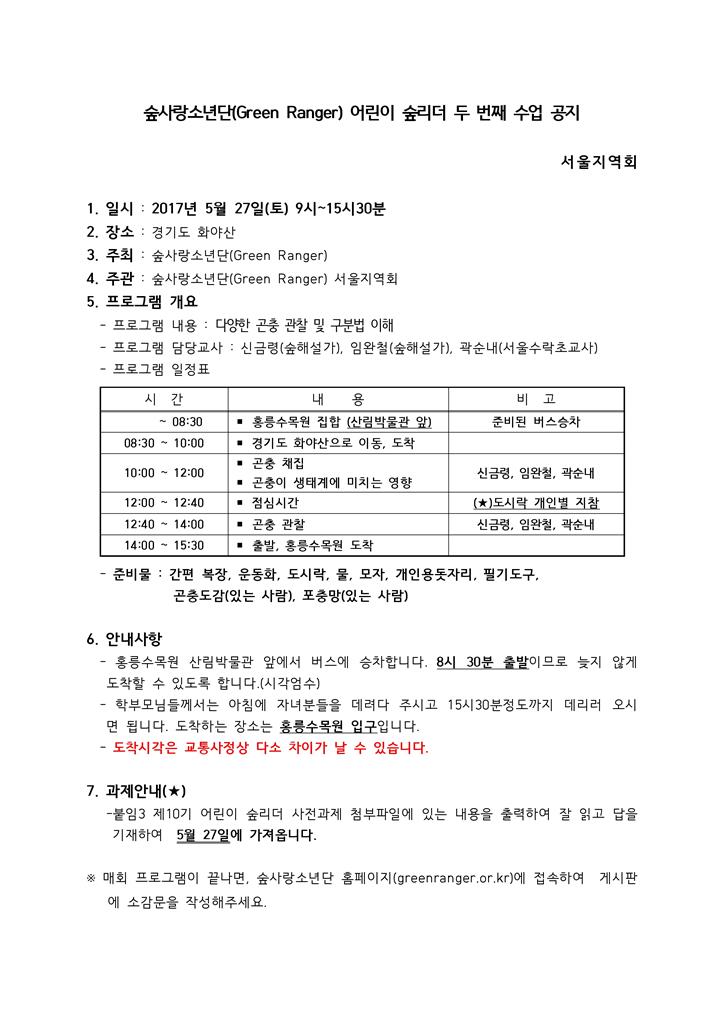 ⦁ 첨부파일 붙임1 제10기 어린이 숲리더 공지사항.hwp 붙임2 제10기 어린이 숲리더 안전교육.hwp 붙임3 제10기 어린이 숲리더 사전과제.hwp