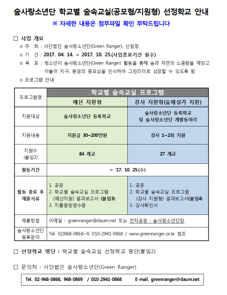 ⦁ 첨부파일 (공문)2017학교별숲속교실선정학교안내.pdf 붙임1,2,3,4.zip