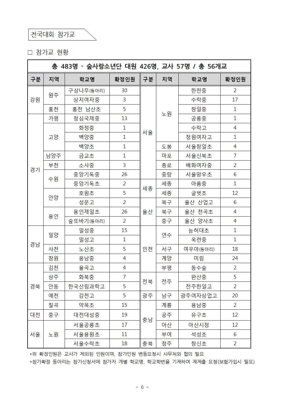 | 제12회 숲사랑소년단 전국대회 참가확정 |