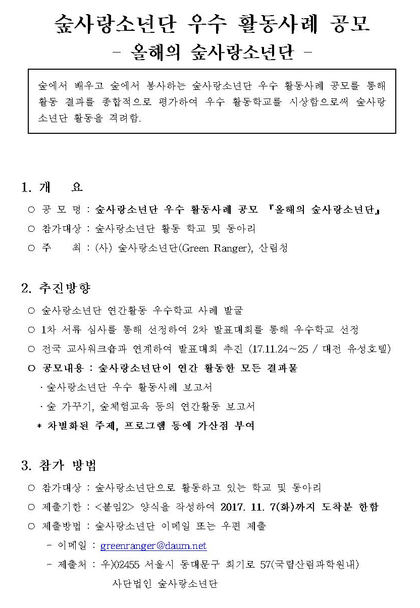 2017 올해의 숲사랑소년단 공모