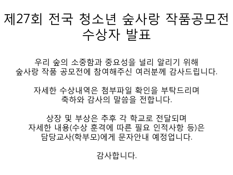 ⦁ 첨부파일 재27회 전국 청소년 숲사랑 작품공모전 입상자 명단.zip