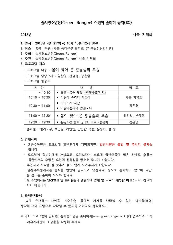 붙임 1) 1회_어린이숲리더 공지사항 붙임 2) 1회_어린이숲리더 아동유인물 및 활동지