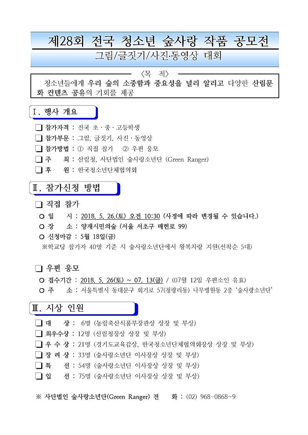 ⦁ 첨부파일 공문_제28회 전국 청소년 숲사랑 작품 공모전 계획서.hwp 붙임 제28회 전국 청소년 숲사랑 작품 공모전 계획서.hwp