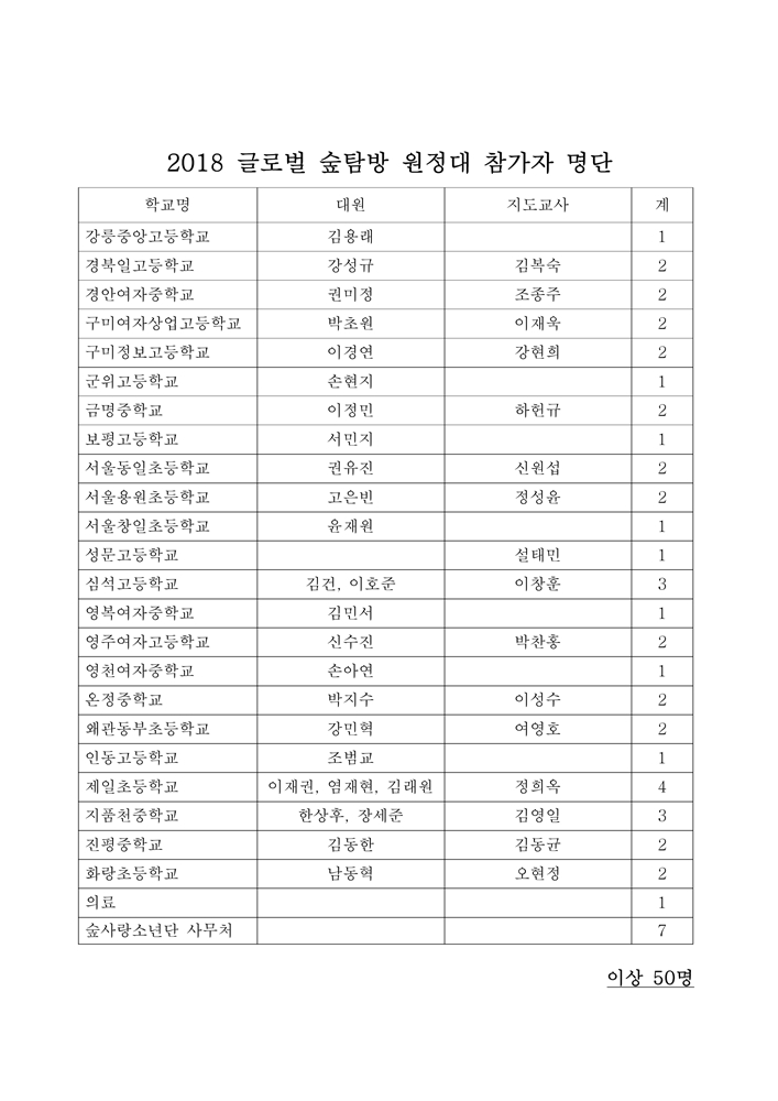 2018 글로벌 숲탐방 원정대 참가자 발표