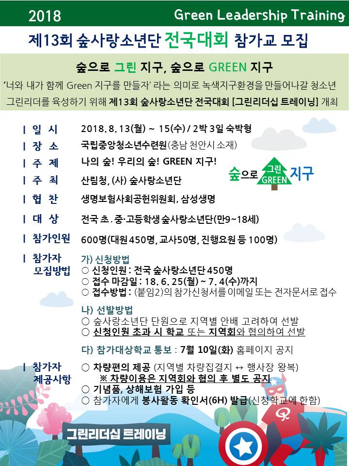 제13회 숲사랑소년단 전국대회[그린리더십 트레이닝] 참가교 모집