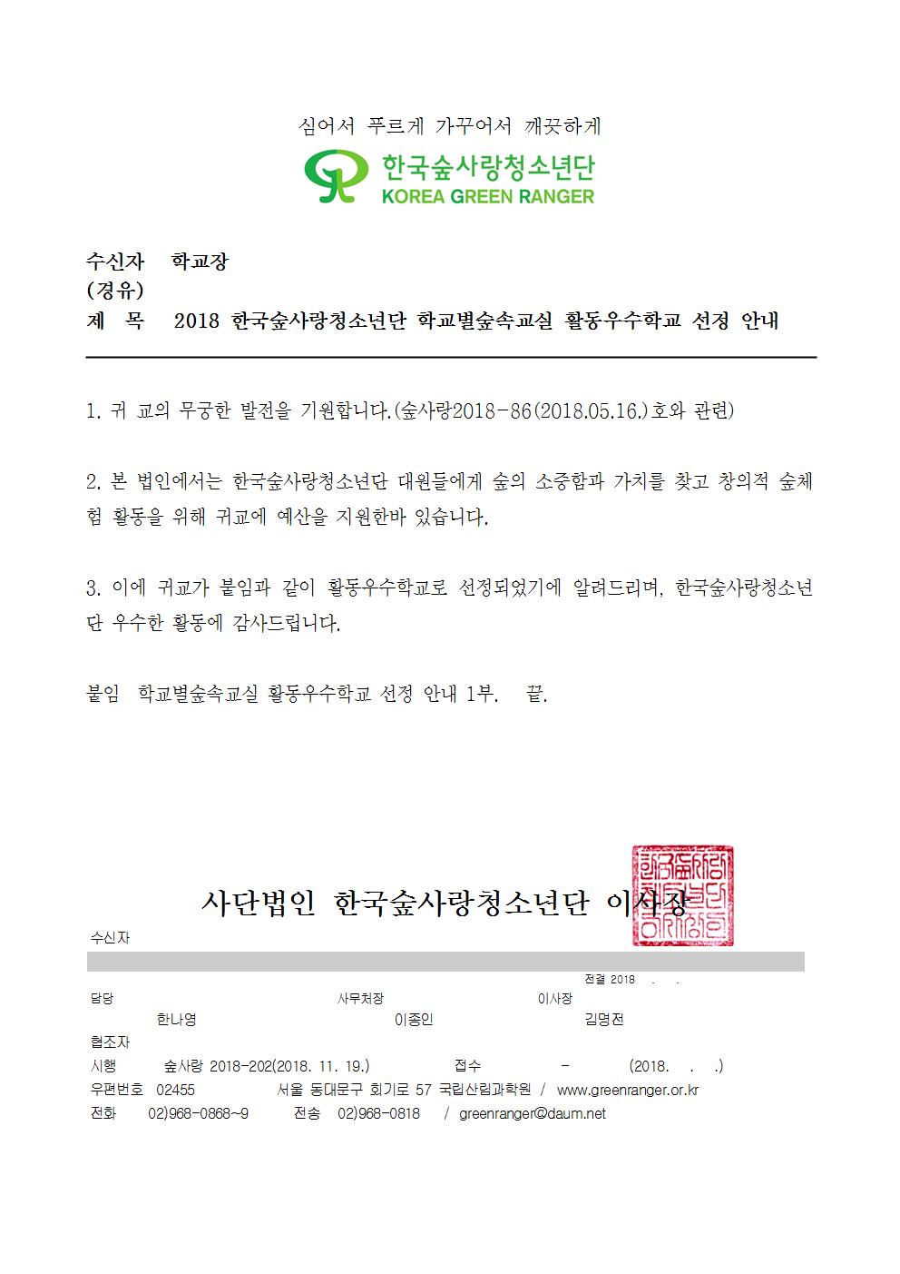⦁ 첨부파일 (공문)학교별 숲속교실.jpg (붙임)학교별 숲속교실 활동우수학교 선정 안내.hwp