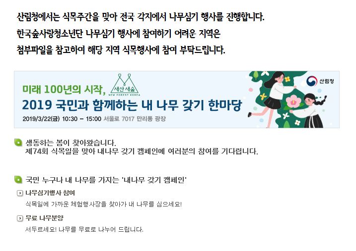 산림청 국민참여 내나무 갖기 캠페인 링크
