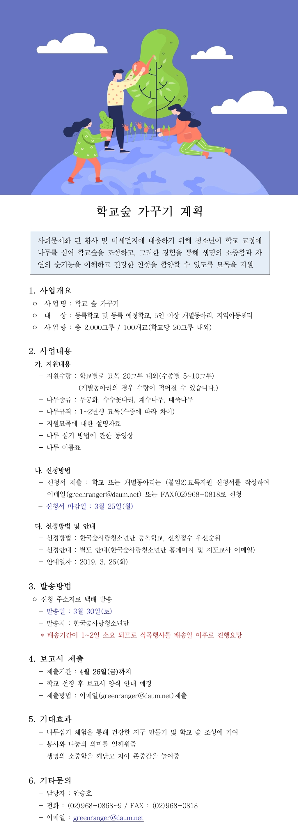 | 2019 학교숲 가꾸기 프로그램 참가 학교 및 동아리 모집 안내 |