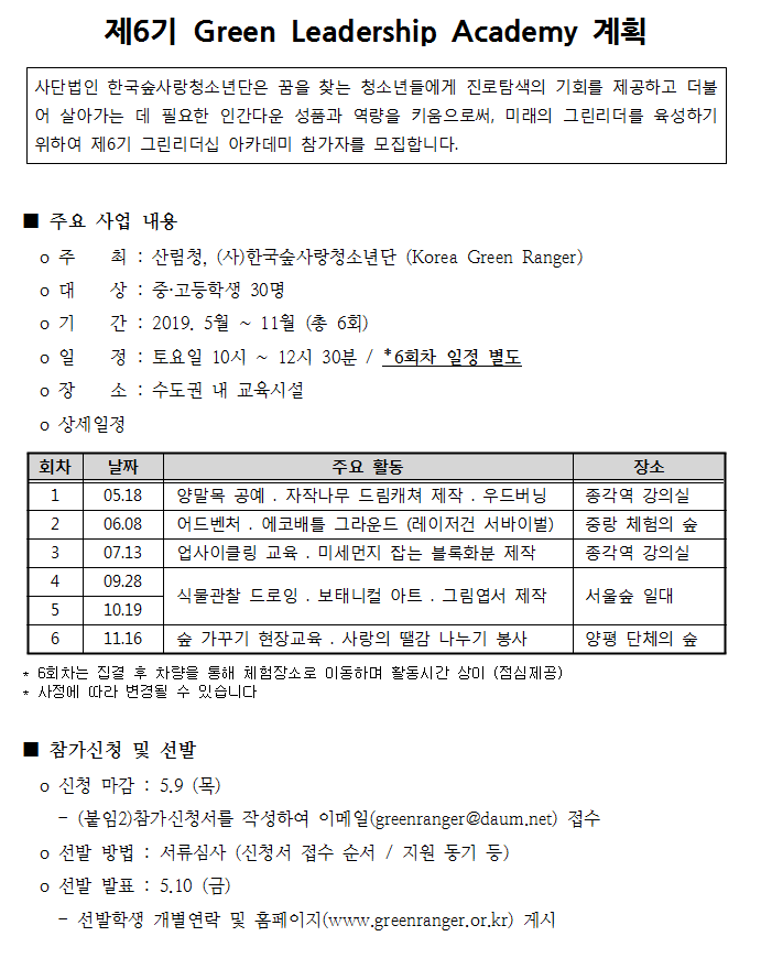| [모집] 제6기 그린리더십 아카데미 참가자 모집 안내 |