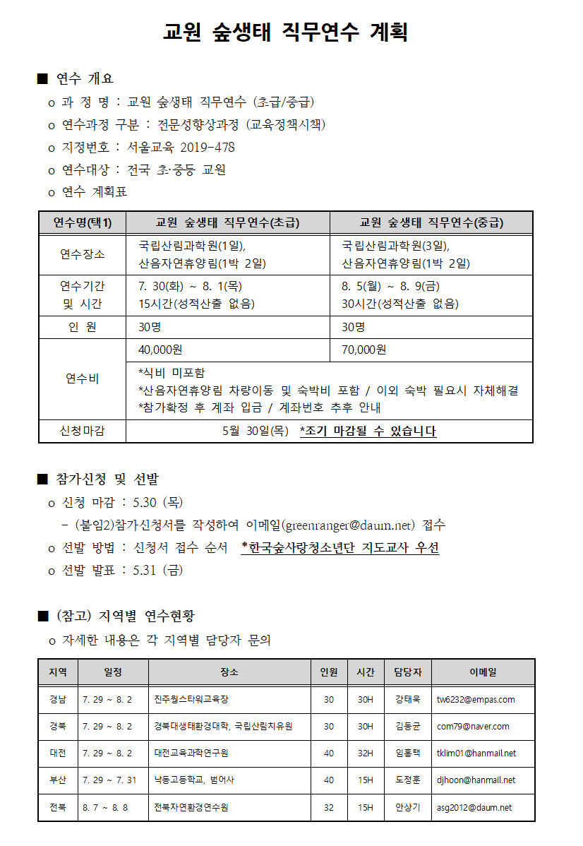 | [모집] 교원 숲생태 직무연수 참가자 모집 안내 |