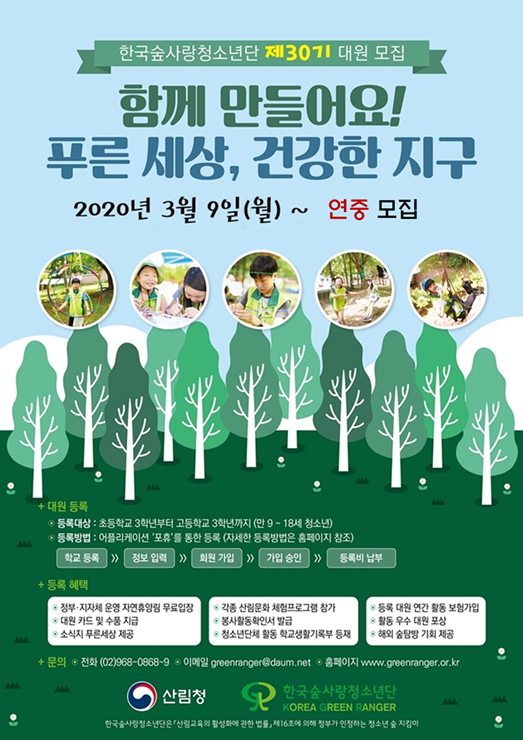 | [대원모집] 한국숲사랑청소년단 제30기 대원모집 연장 안내 |