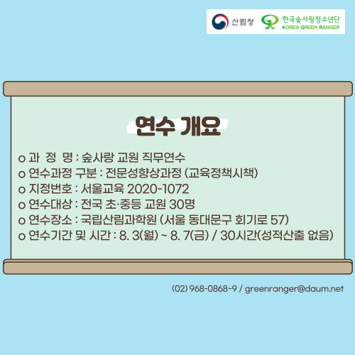 | [모집] 숲사랑 교원 직무연수 참가자 모집 안내 |