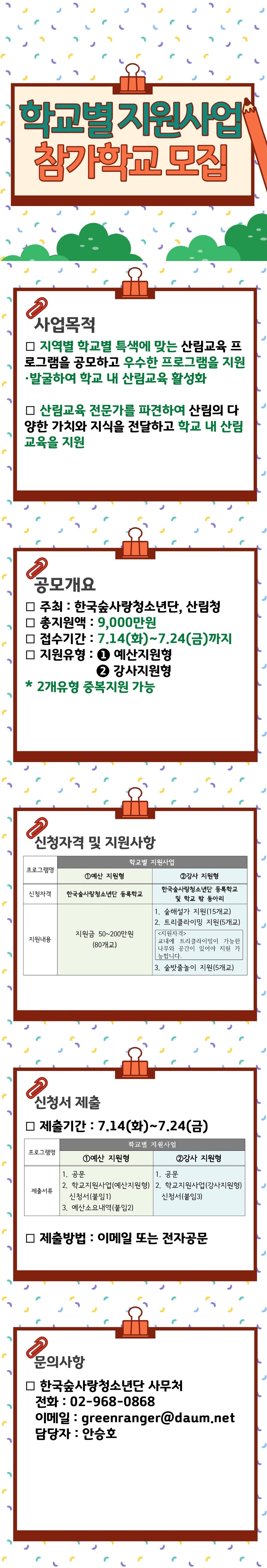 ⦁ 첨부파일 [공문]한국숲사랑청소년단 학교별 활동지원 공모 안내.pdf [붙임]2020년도 학교지원사업 공모 계획서.hwp