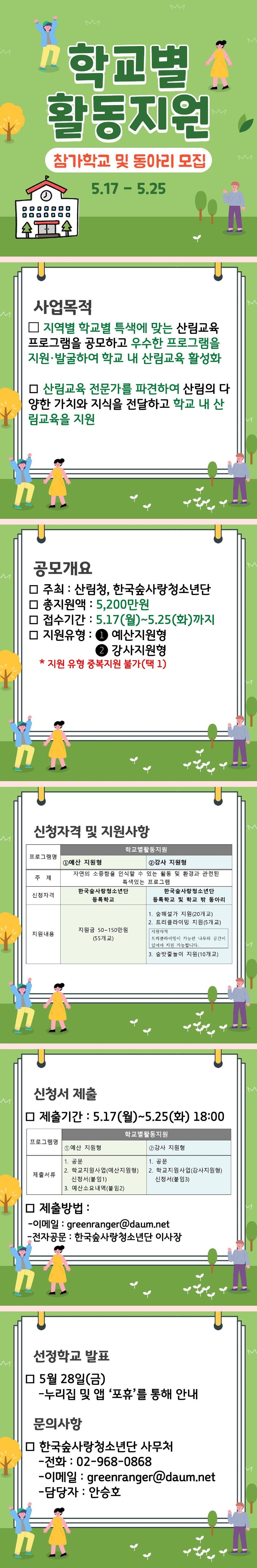 ⦁ 첨부파일 [공문]한국숲사랑청소년단 학교별 활동지원 공모 안내.pdf [붙임]2021년도 학교지원사업 공모 계획서.hwp