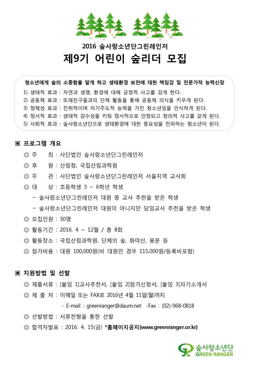 [모집] 제9기 어린이숲리더