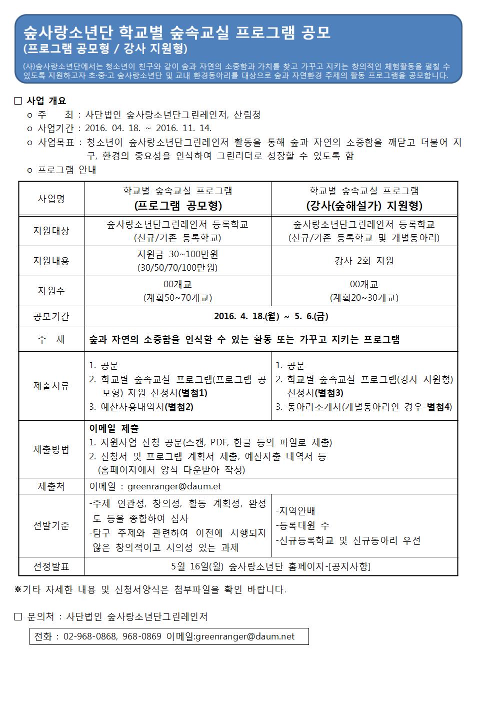 | [숲사랑소년단 학교별 숲속교실 프로그램] 공모 안내 |