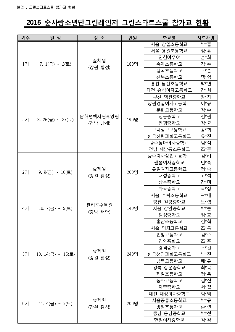 ⦁ 첨부파일 (공문)그린스타트스쿨 참가확정.pdf 붙임1)그린스타트스쿨 참가교 현황.hwp 붙임2)참가자명단(5.27일까지 제출).hwp |