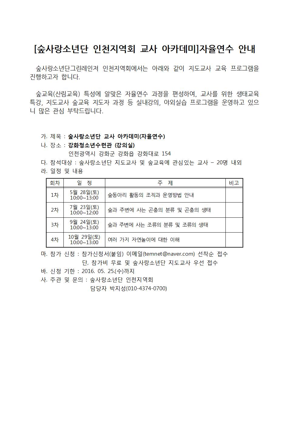 ⦁ 첨부파일 (공문)숲사랑소년단 교사 아카데미(자율연수) 안내.pdf (붙임)교사아카데미 자율연수 신청서.hwp